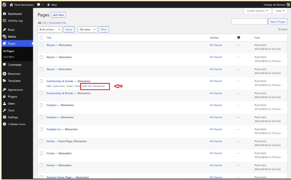 For existing pages, you can select Edit with Elementor directly from the WordPress dashboard.