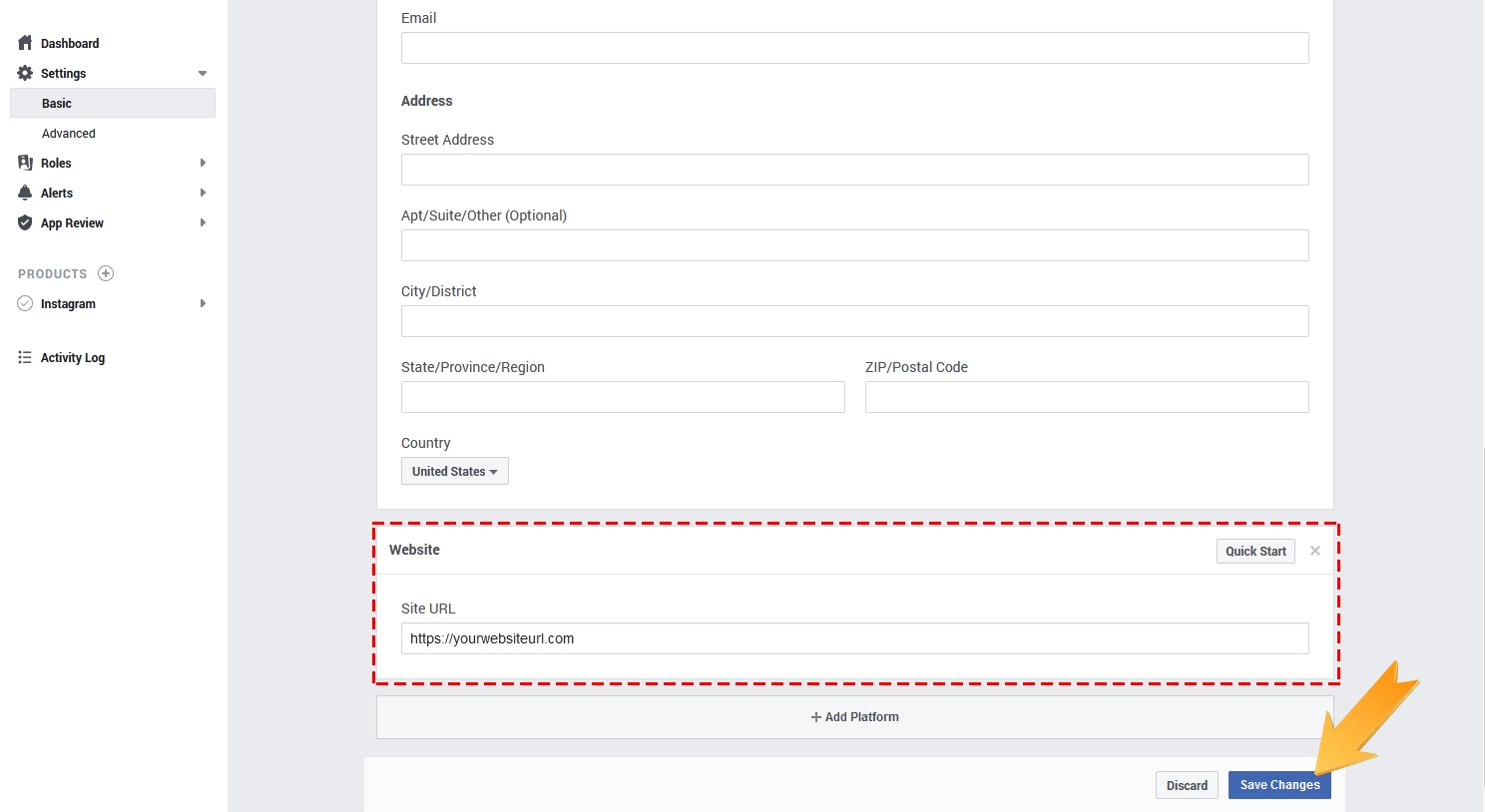 Once you have created the app and are in the App Dashboard, navigate to Settings > Basic, scroll the bottom of the page, and click Add Platform.