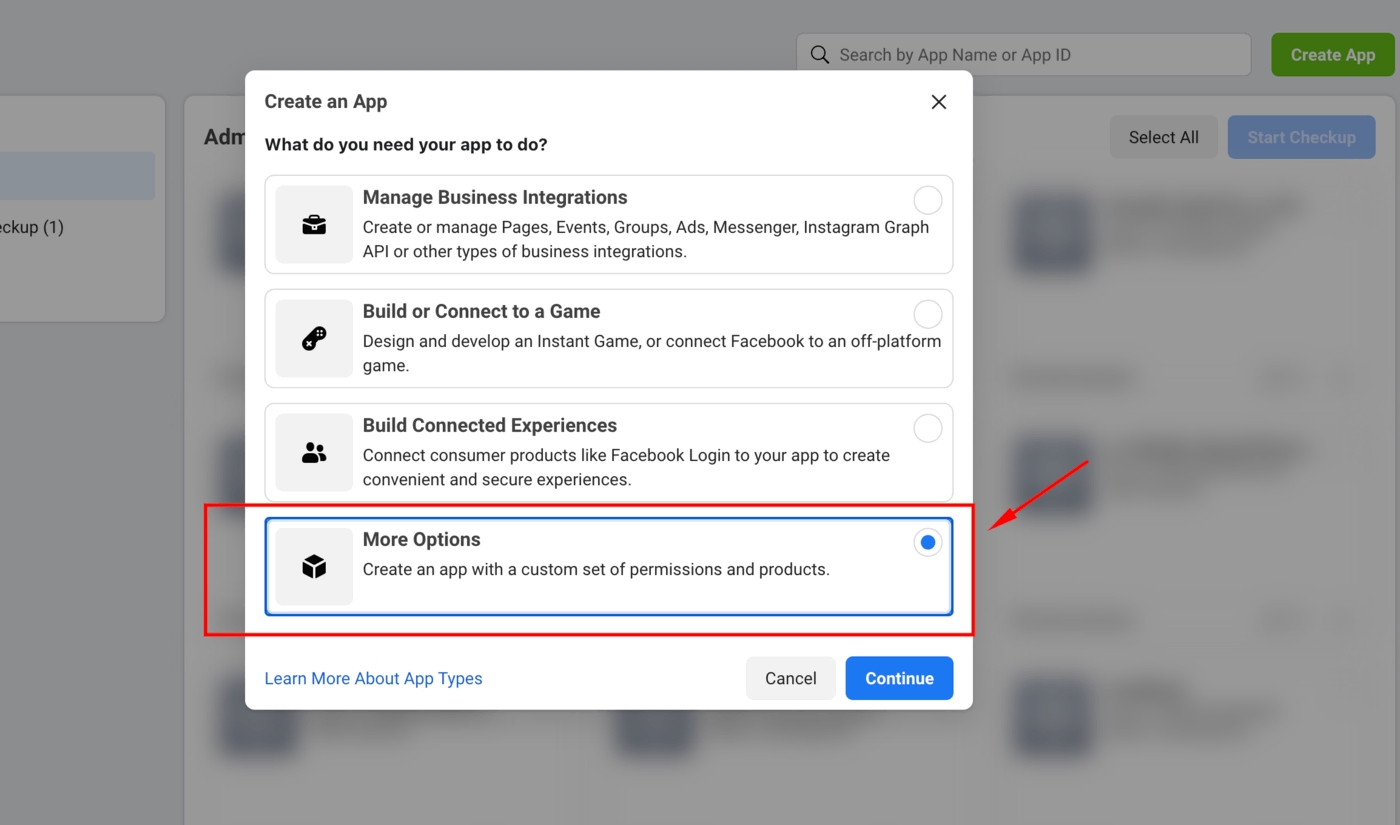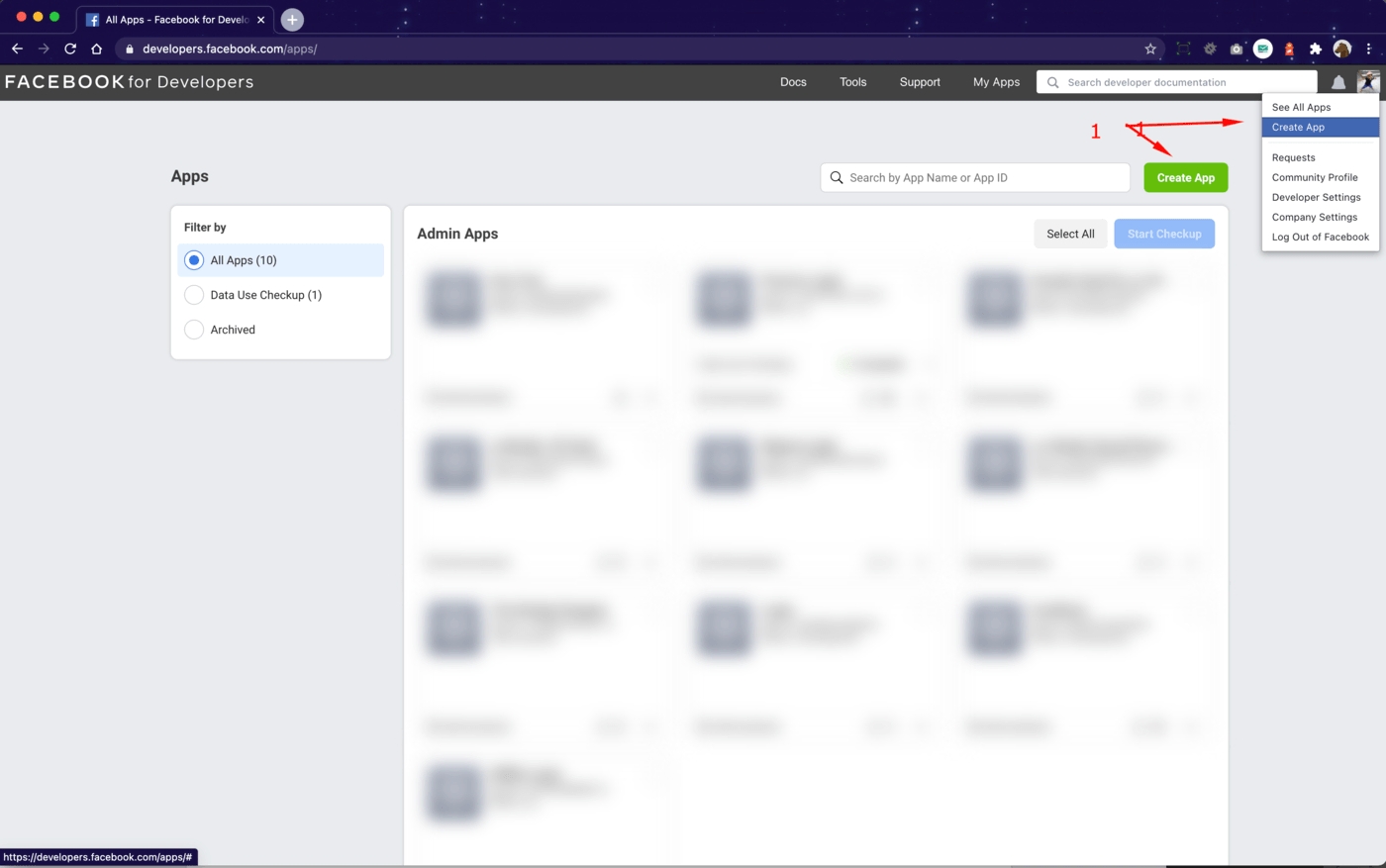 Go to developers.facebook.com, click My Apps, and create a new app.