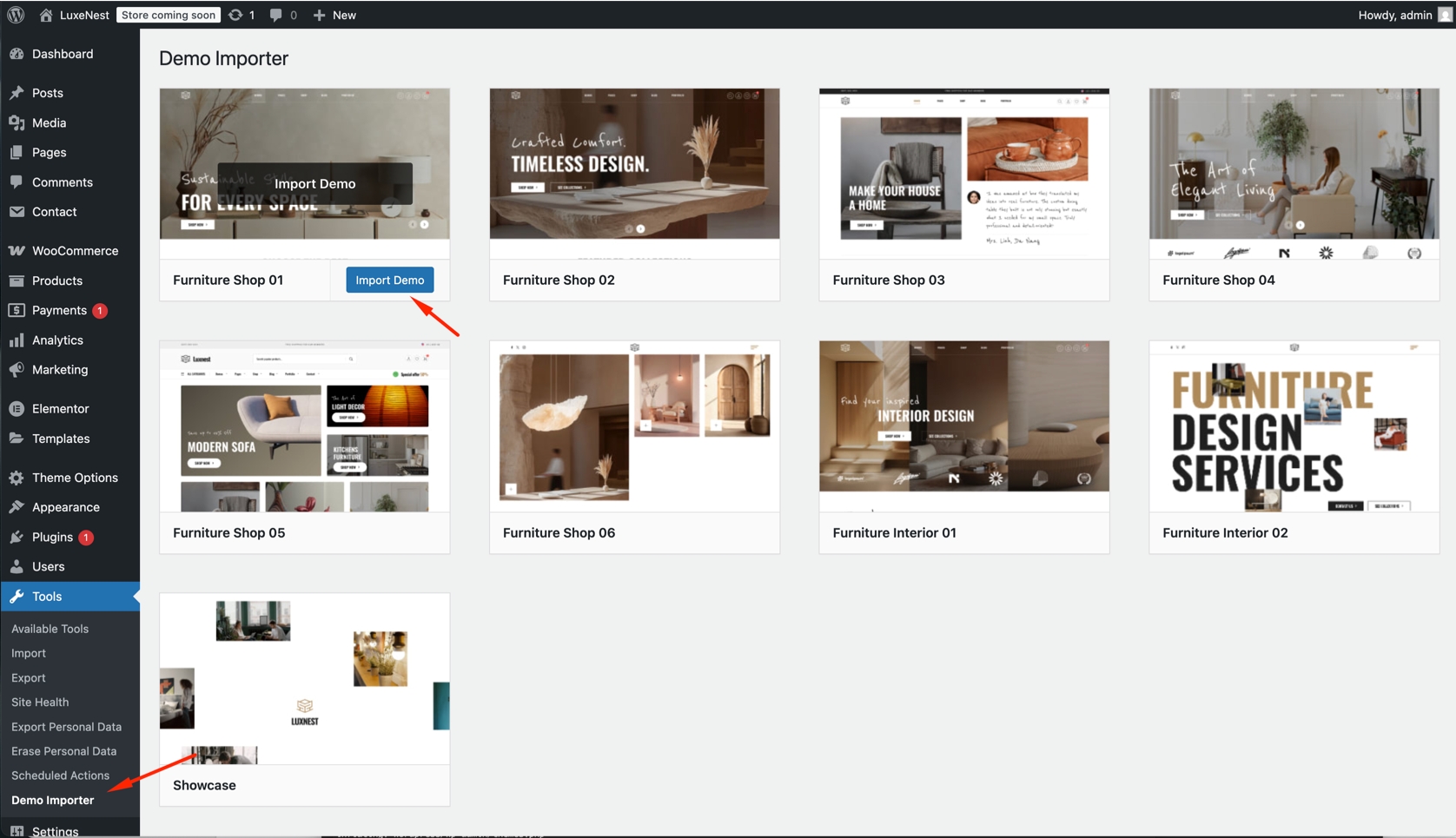 Go to Tools -> Demo Importer