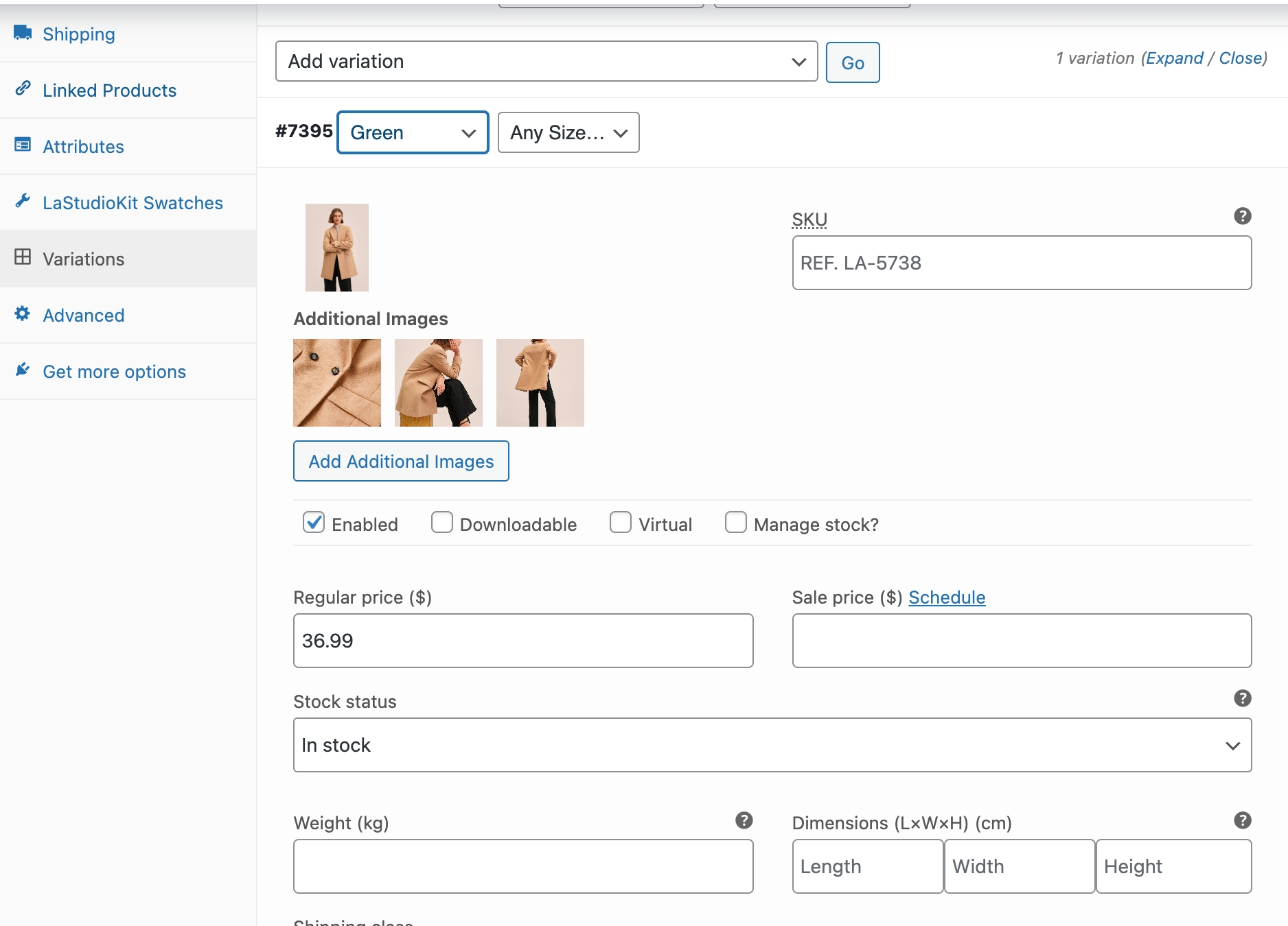 Notes: In order to display the product variation image when customers select the attribute then you need to add all the variations’ images to Product gallery.