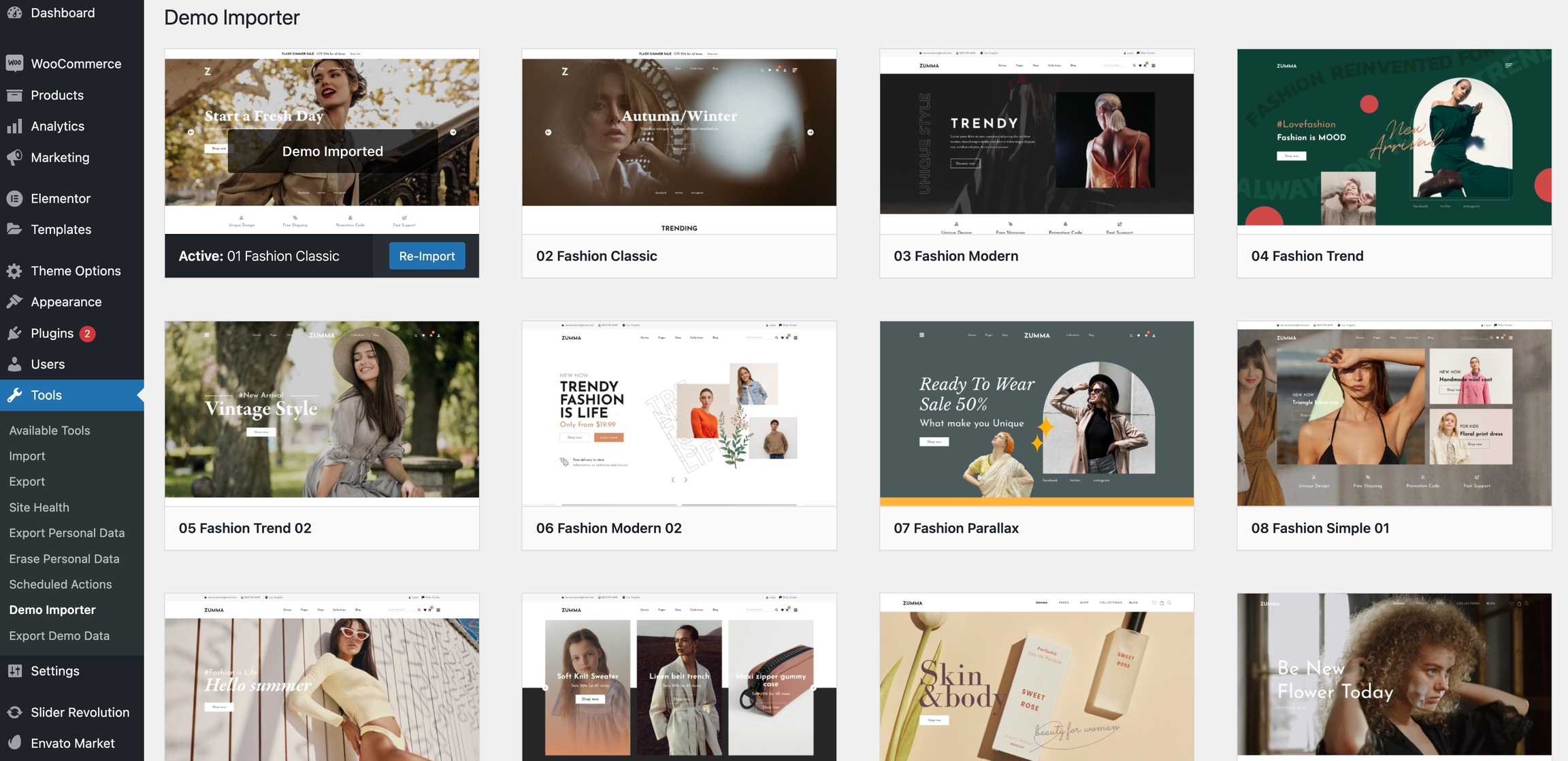 Then select the demo which you want import and click to button "Import Demo"
