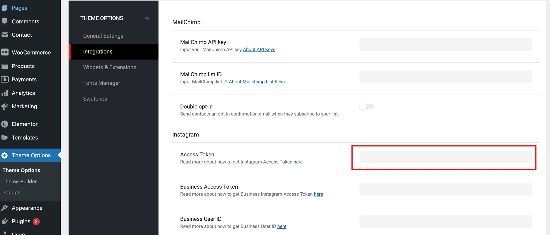 Paste your Instagram Access Token on Theme Options -> Integrations -> Instagram Token