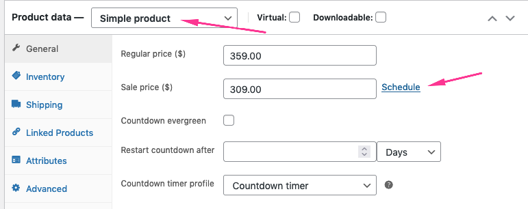 Step 4: From the tab General, click on Schedule next to the Sale price, set the Sale price as well as the valid time for it.