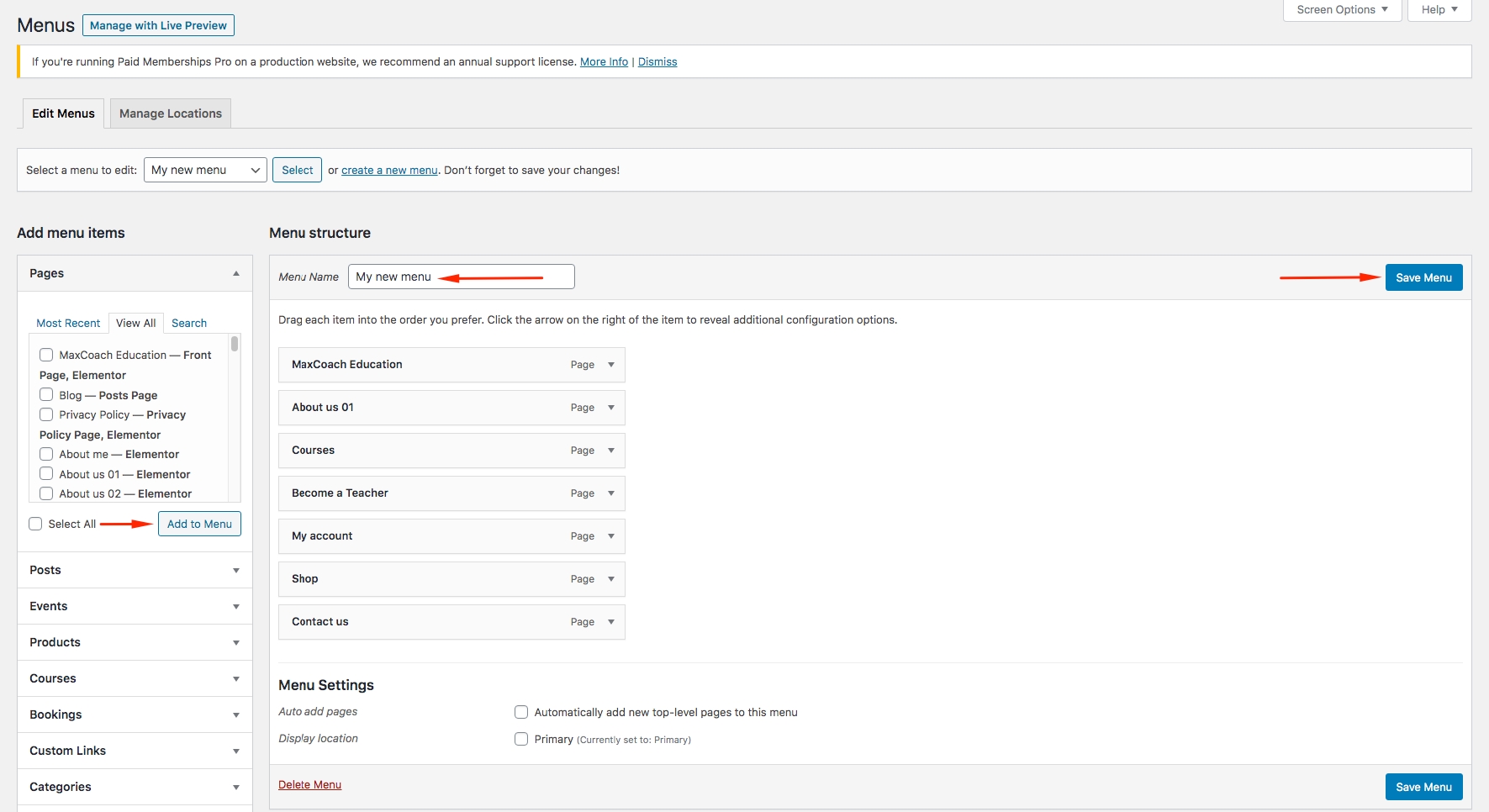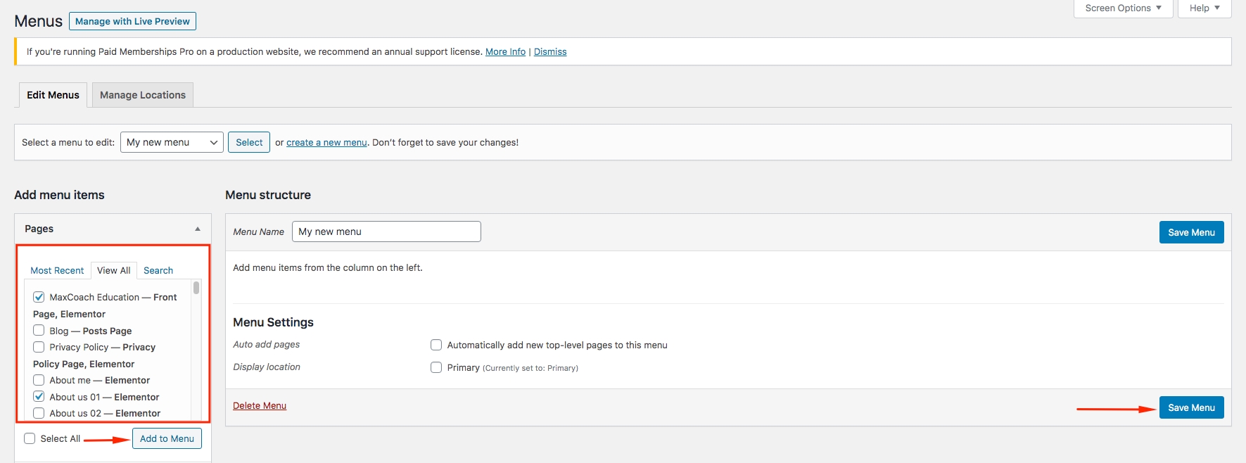 Step 3: Choose menu items you want to add from the left and hit Add to Menu.