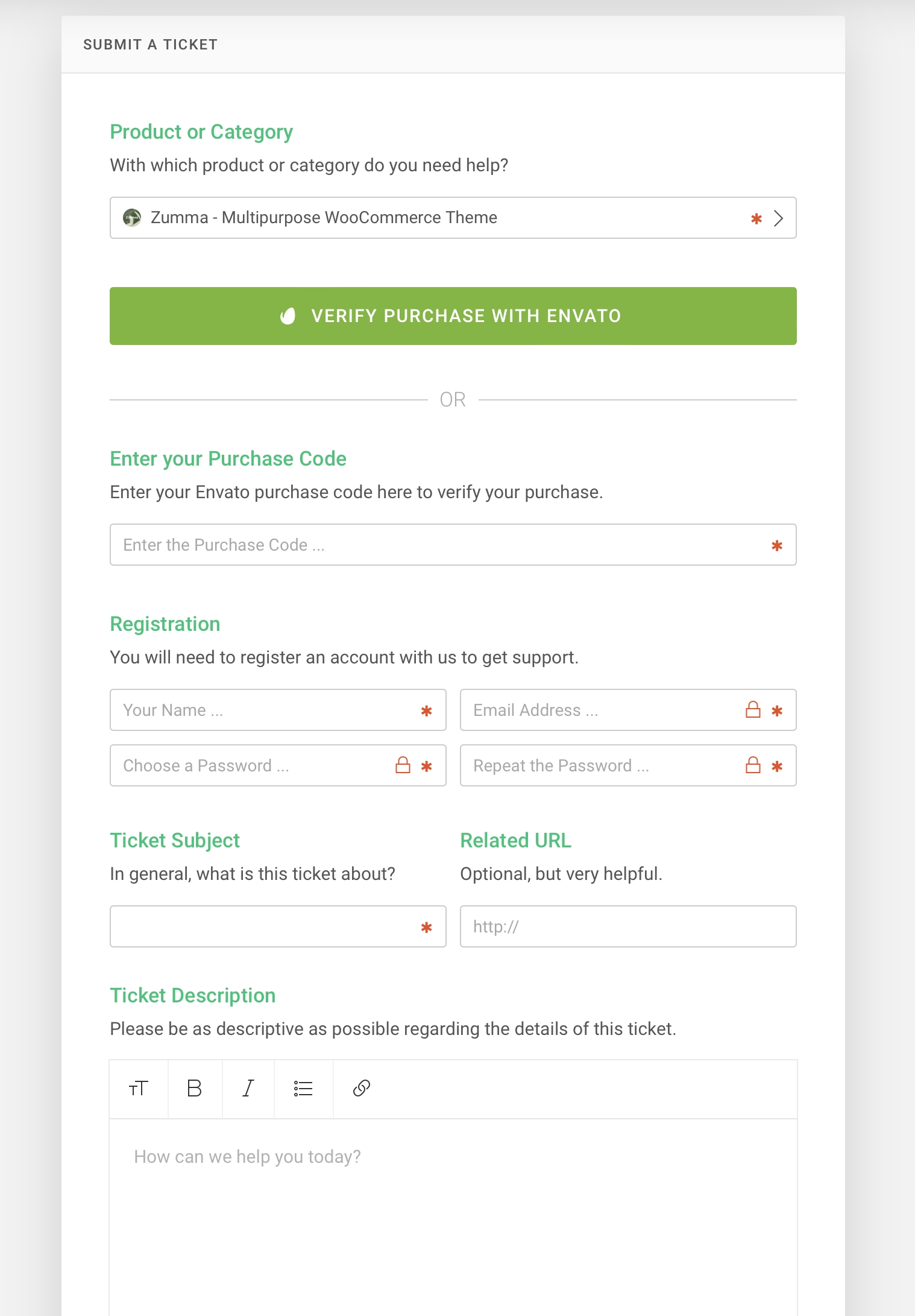We have an advanced, secure ticket system to handle your requests. Support is limited to questions regarding the theme’s features or issues that are related to the theme.